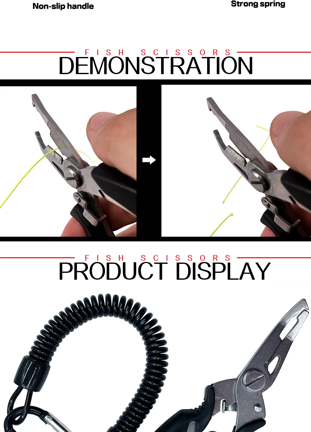 Fishing plier scissors, can cut fishing line and remove the hook, very helpful tool for fishermen.