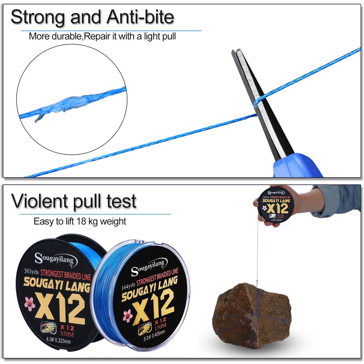 Sougayilang 350m 550m Top Fishing Line PE Braided Fishing Wire 12 Strands Test 20-103lb Saltwater Freshwater Fishing Tackle