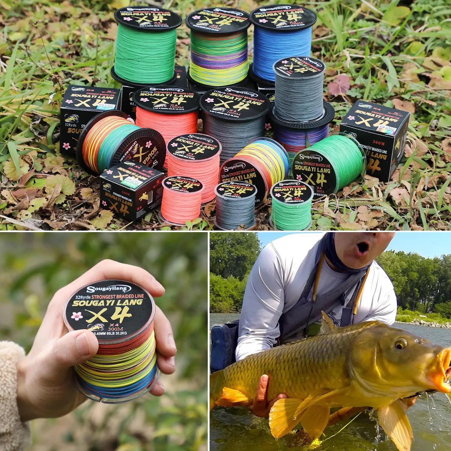 Sougayilang Braided Line 4X 100/300m 5 Colors Max Drag 66 LB Line Multifilament PE Line for Saltwater Sea Fishing Accessories