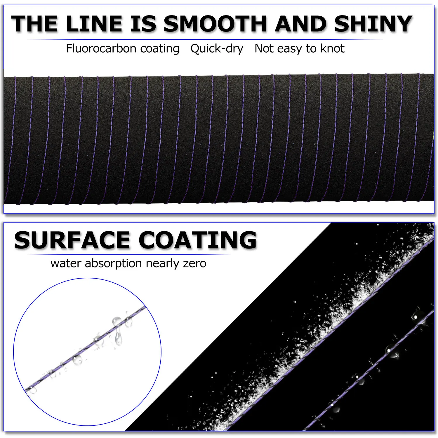 2, 8 Strands PE line, unique braid construction, made of ultra-high strength PE fibers.